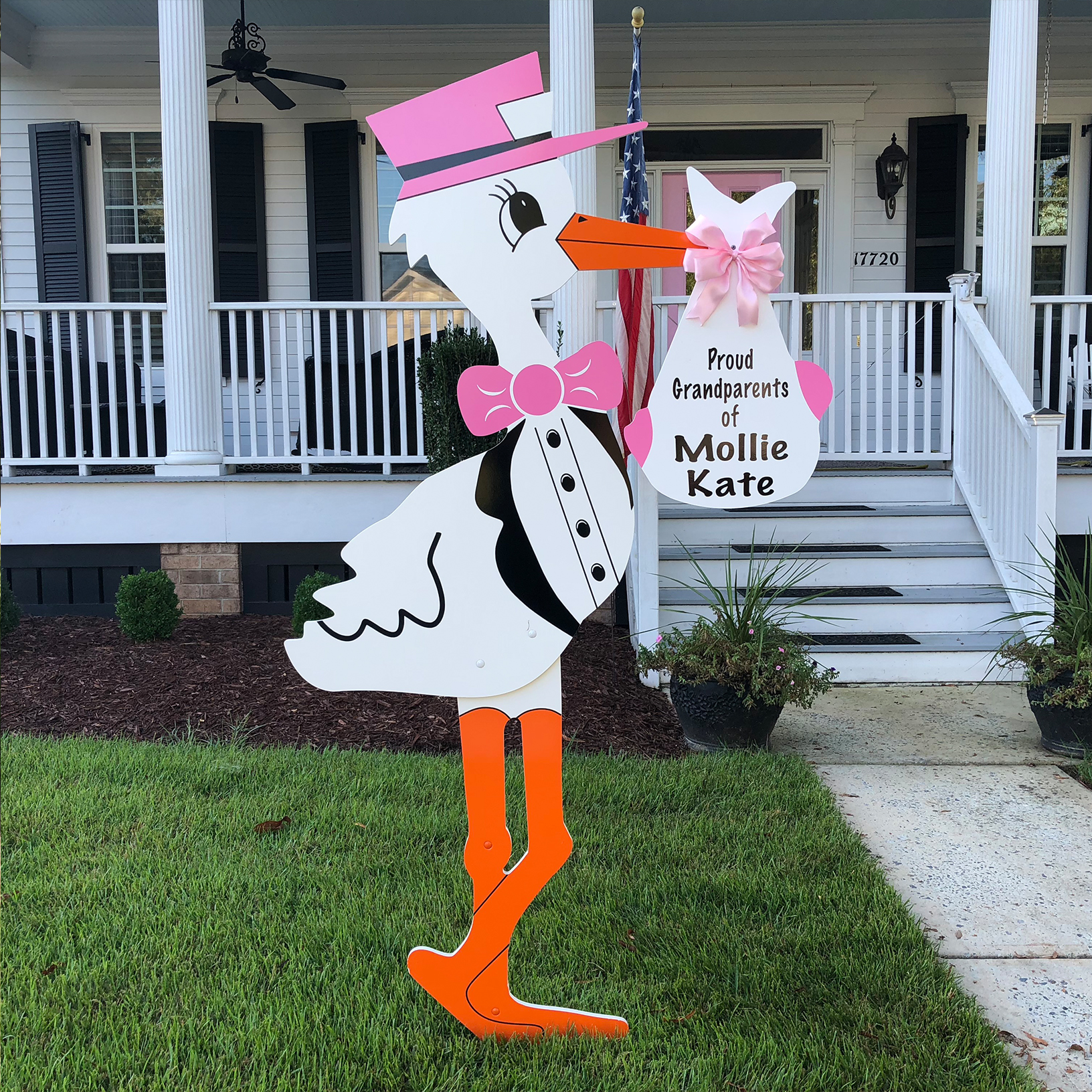 Welcome your new grandbaby in style with our Grandparent Pink or Blue Stork Sign Rental! This eye-catching stork comes with a personalized bundle featuring your grandchild’s name and birth details. Perfect for sharing the exciting news with neighbors and friends across Memphis and the surrounding areas! A charming way to celebrate this special milestone.